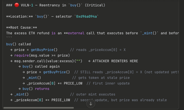 There is an open secret in the audit industry: audits are time bounded. An auditor gets a fixed number of weeks, then they have to move on. A dangerous bug may be sitting just beyond the time budget, waiting for one more round of testing or one more experiment on a complex interaction. This is exactly where the human plus AI pairing becomes powerful. AI can take over a lot of the grind, writing PoCs, testing hunches, verifying variants, while the human auditor spends more of their limited time on strategy, edge cases, and novel attack paths.