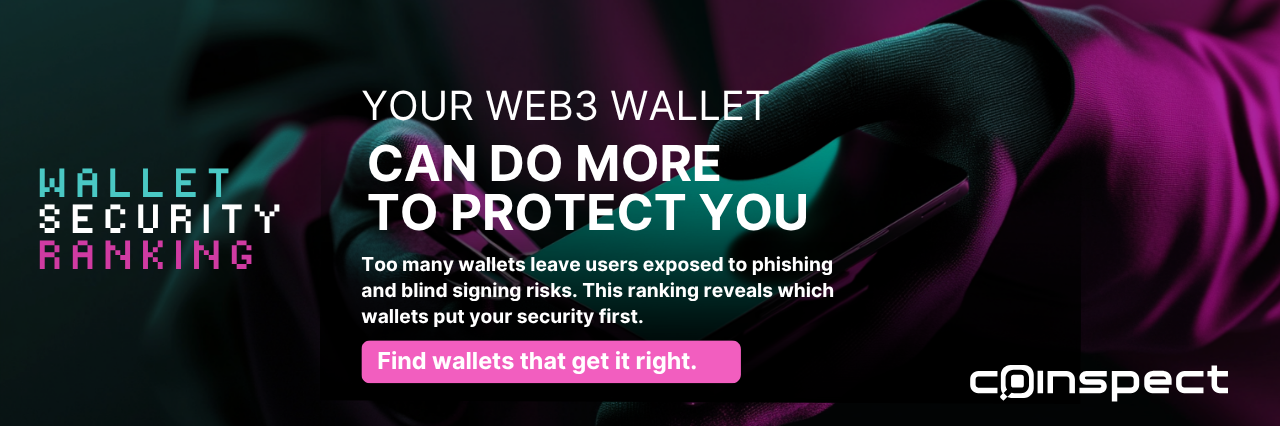 Coinspect’s Wallet Security Ranking is an objective, transparent, and regularly updated evaluation of leading cryptocurrency wallets. It focuses on critical security features like anti-phishing defenses, transaction clarity, and protection against blind signing, helping users choose wallets that prioritize their safety.